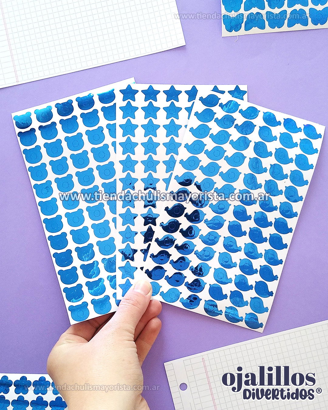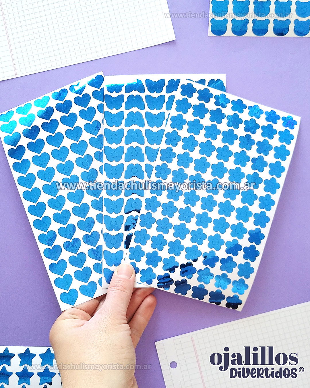 Los Ojalillos Divertidos® no solo protegen las perforaciones de tus hojas de carpeta sino que además le agregan estilo, son muy resistentes y vienen de tantos colores, formas y diseños, que tu cliente no va a poder elegir solo una planchita