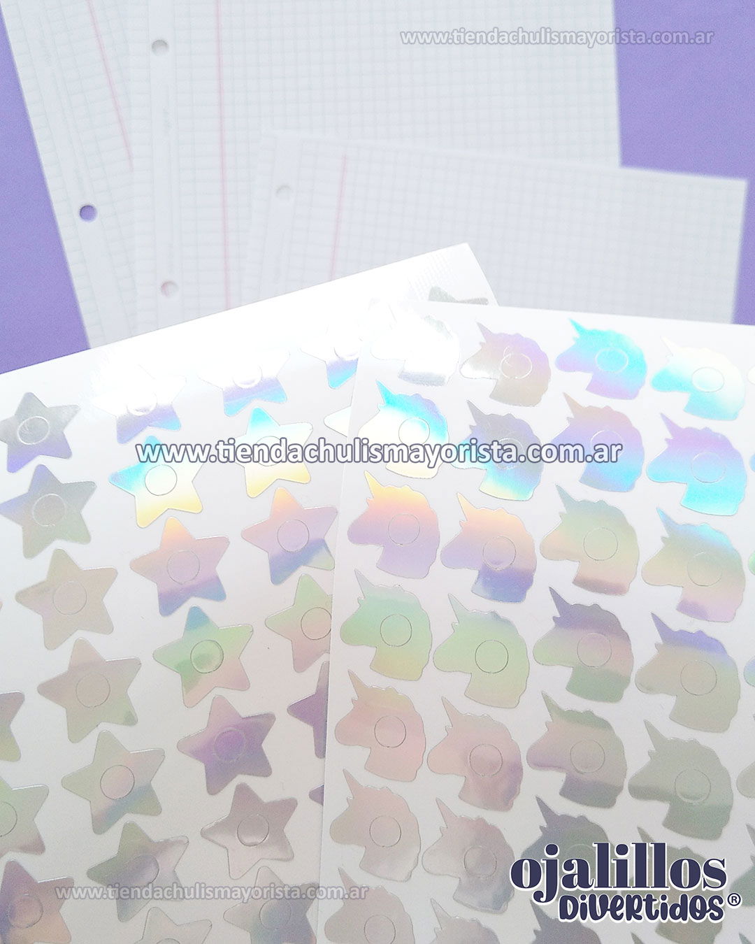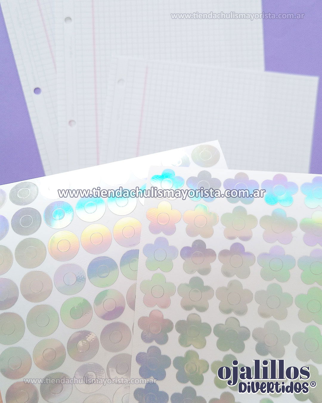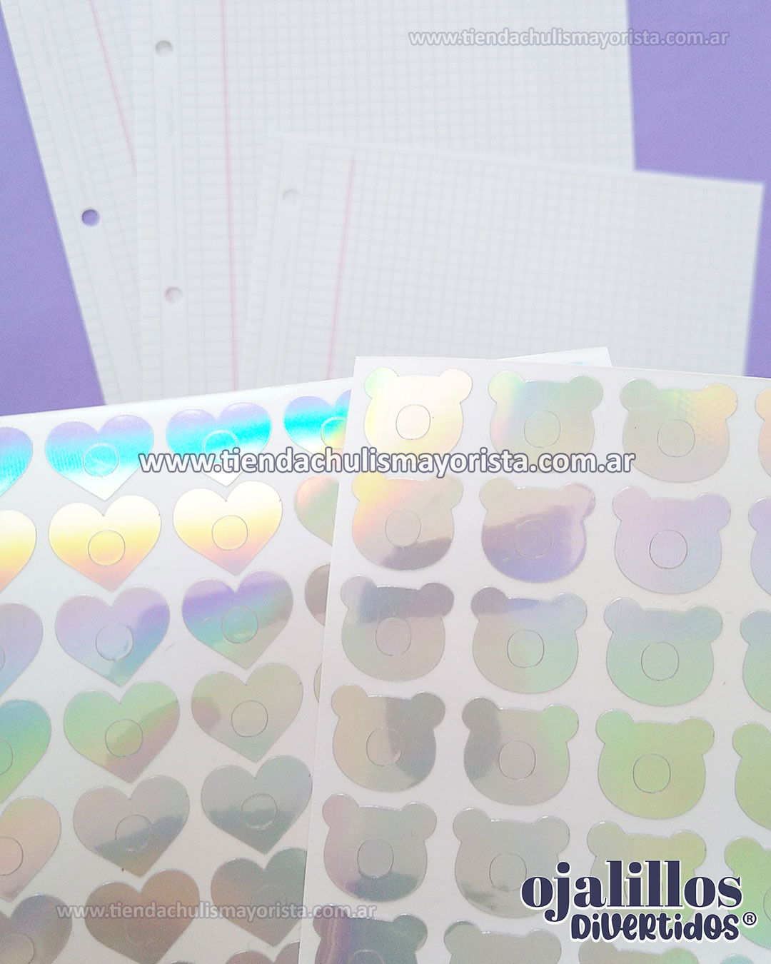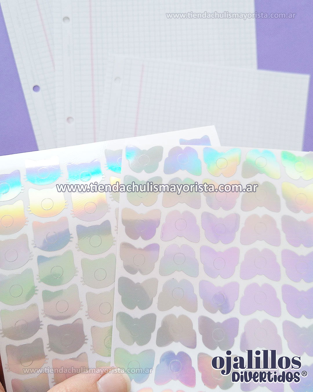 Los Ojalillos Divertidos® no solo protegen las perforaciones de tus hojas de carpeta sino que además le agregan estilo, son muy resistentes y vienen de tantos colores, formas y diseños, que tu cliente no va a poder elegir solo una planchita 💜