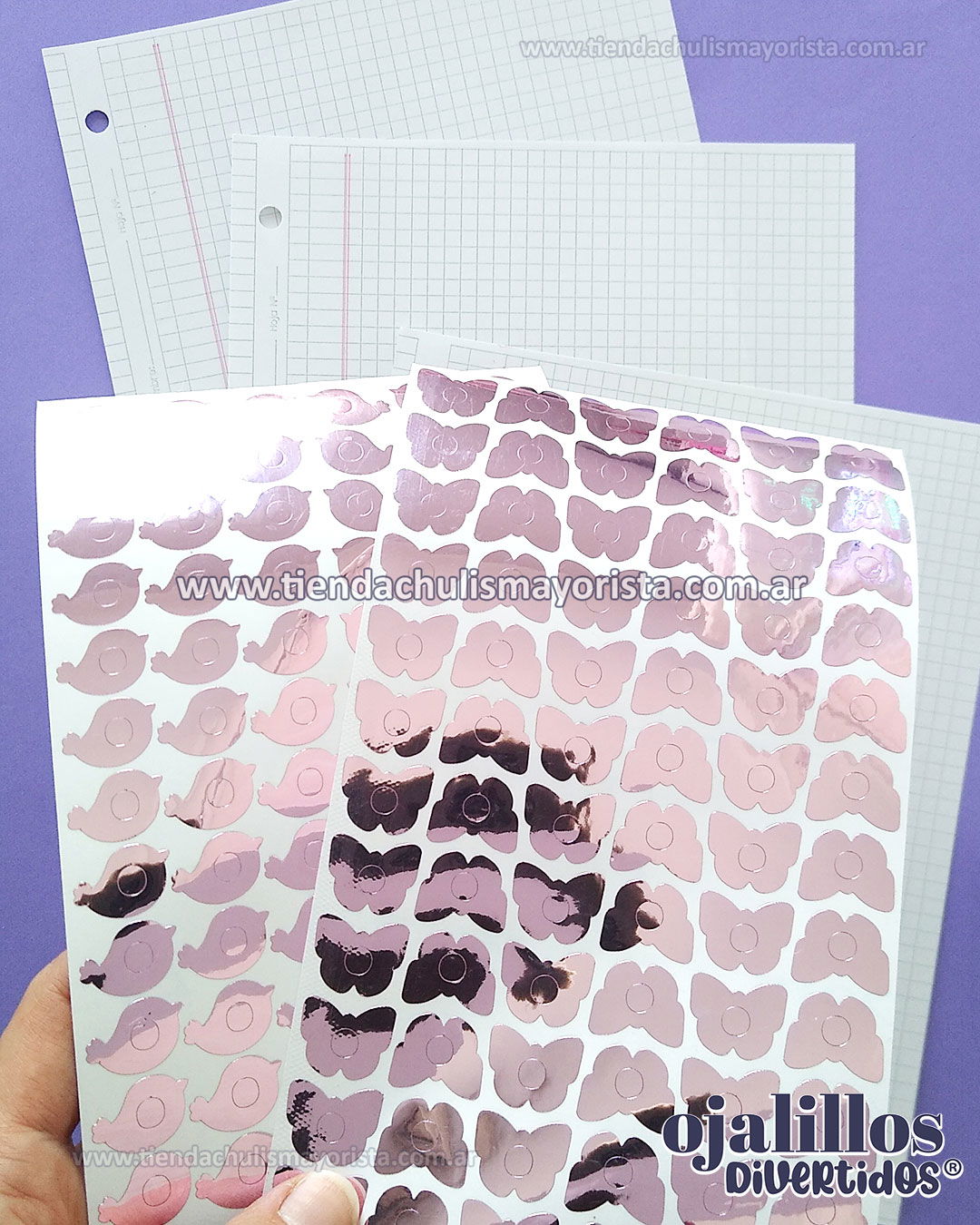 Los Ojalillos Divertidos® no solo protegen las perforaciones de tus hojas de carpeta sino que además le agregan estilo, son muy resistentes y vienen de tantos colores, formas y diseños, que tu cliente no va a poder elegir solo una planchita 💜