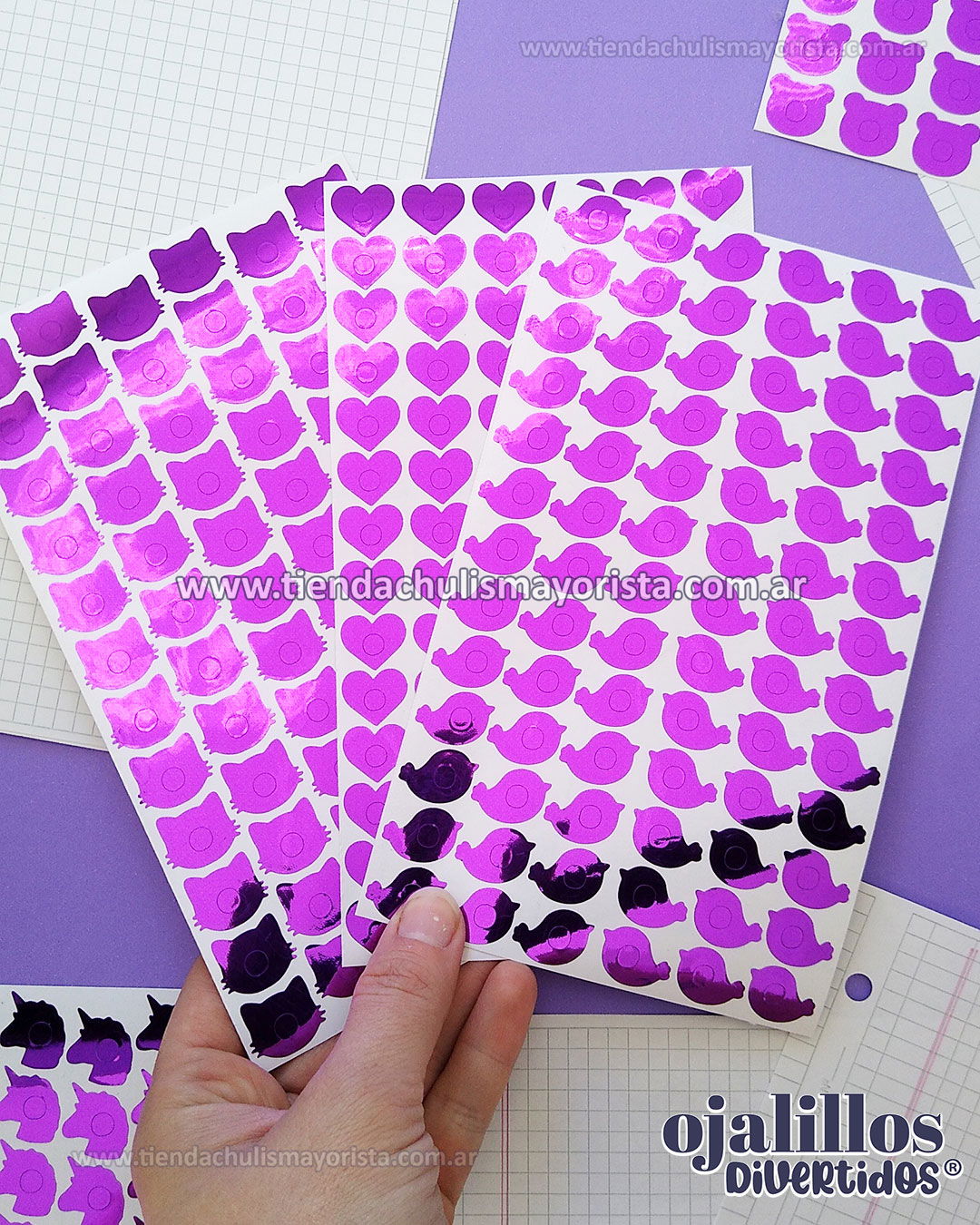 Los Ojalillos Divertidos® no solo protegen las perforaciones de tus hojas de carpeta sino que además le agregan estilo, son muy resistentes y vienen de tantos colores, formas y diseños, que tu cliente no va a poder elegir solo una planchita 💜